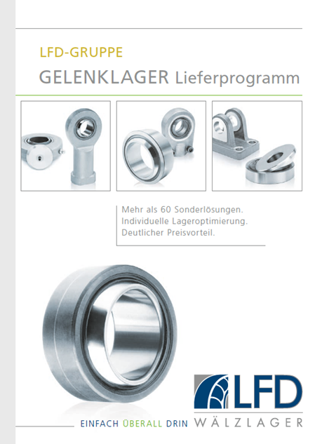 Unser LFD-Gelenklager-Lieferprogramm umfasst alle Bereiche der GelenklagertechnikUnser umfangreiches Sortiment mit mehr als 5.000 Artikeln umfasst sowohl wartungspflichtige Gelenklager als auch wartungsfreie Gelenklager und Gelenkköpfe bzw. Gelenkaugen nach DIN ISO 12240-4/DIN 648. Radial- und Axial-Gelenklager gehören ebenso dazu wie Schräg-Gelenklager.